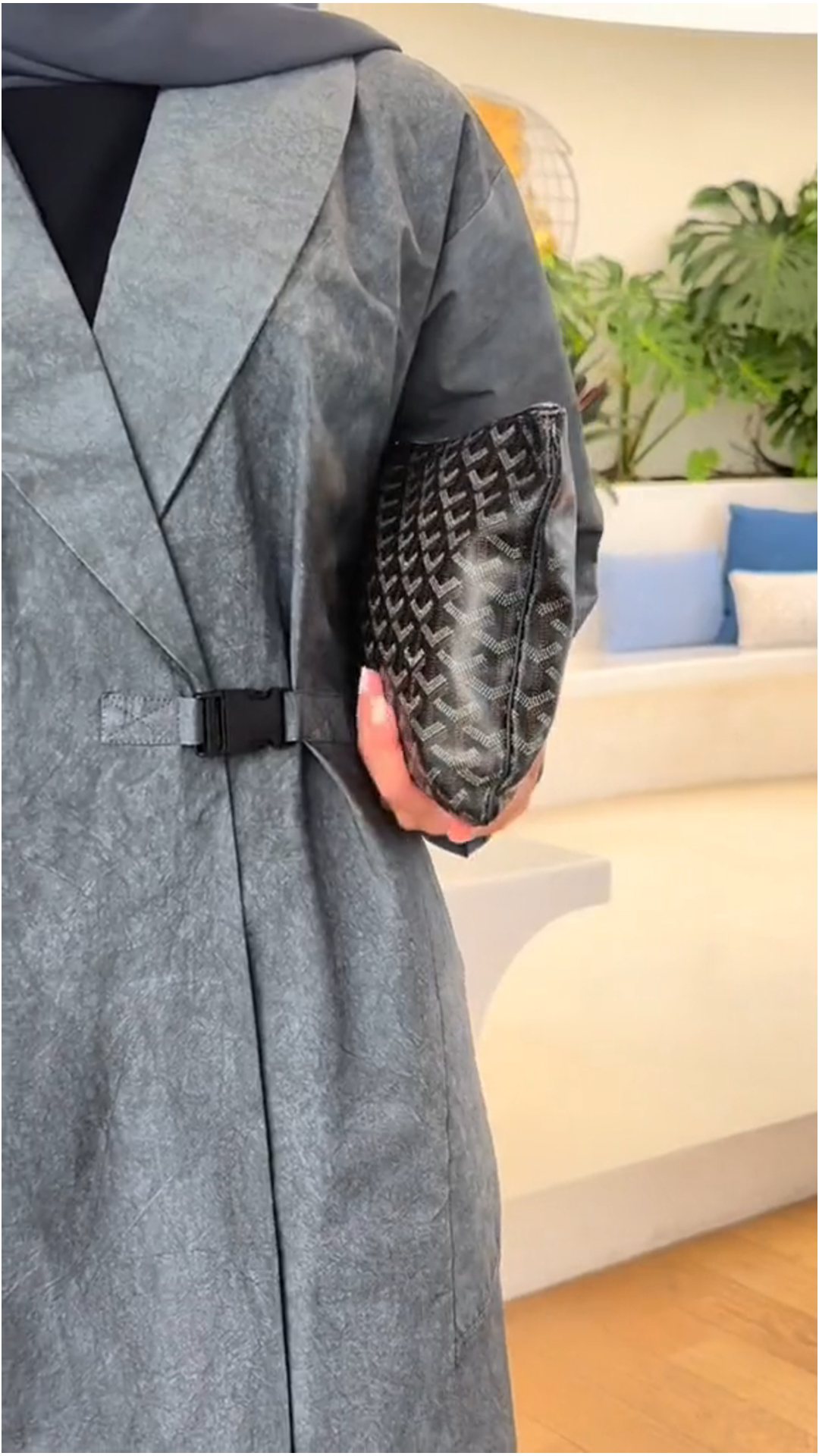 Design button high-grade gray elegant robe