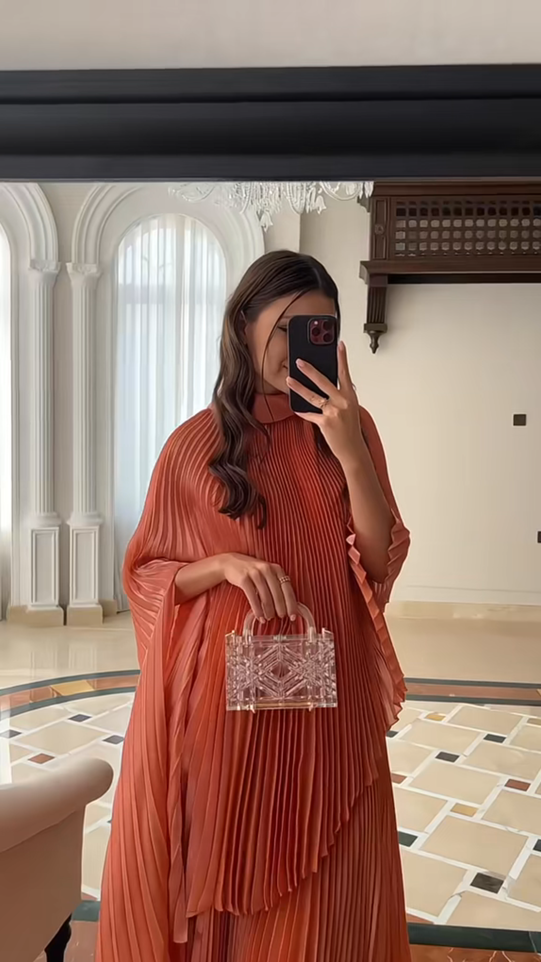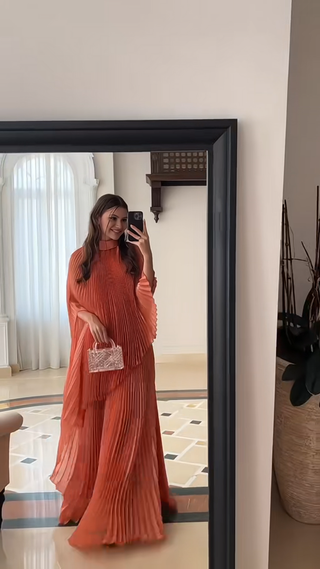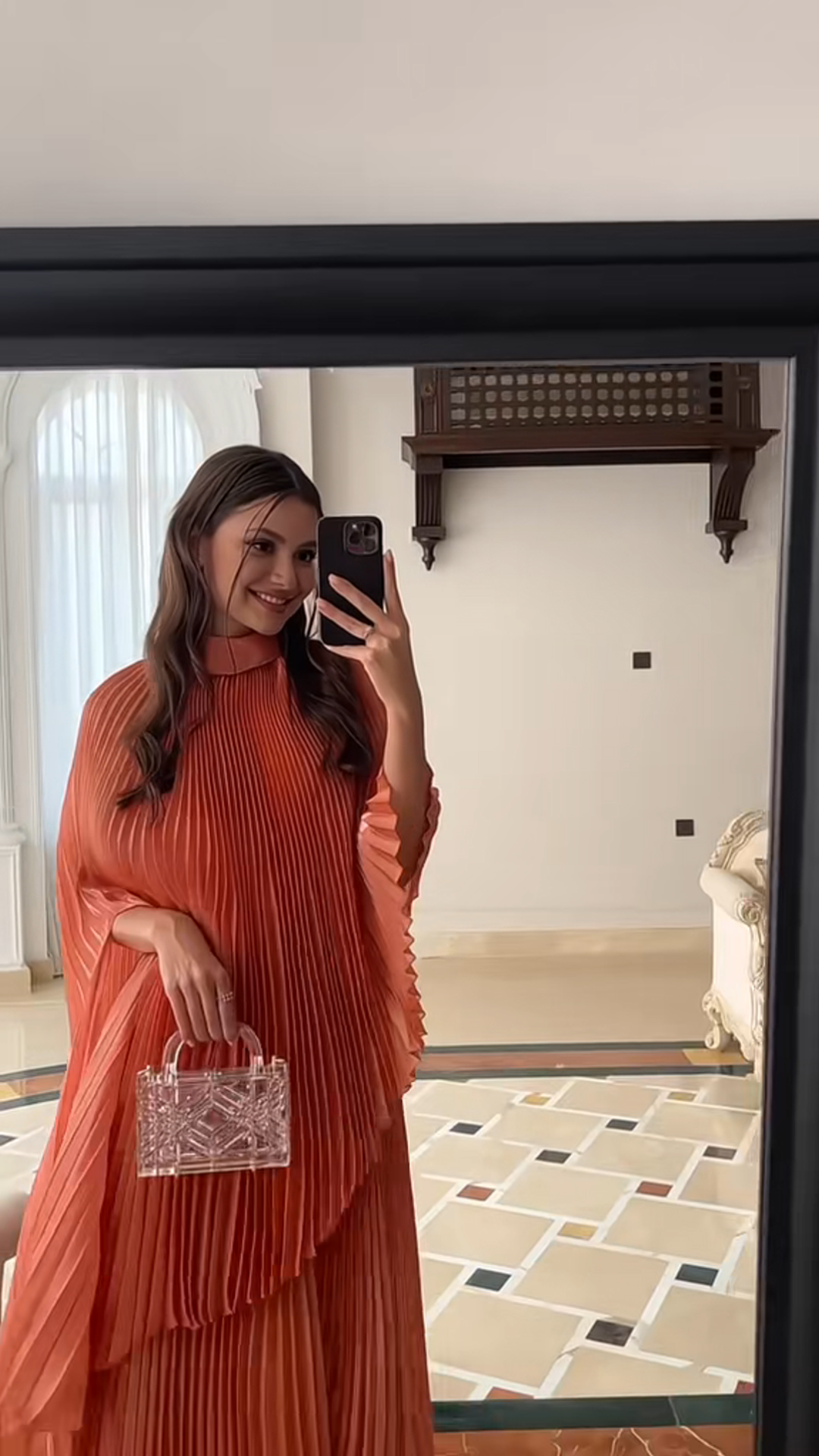 فستان احتفالي مطوي بلون البرتقال الزاهي - مجموعة جديدة